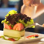 Het restaurant van Kristal Hotel, "Food Corner", serveert lokale gerechten.